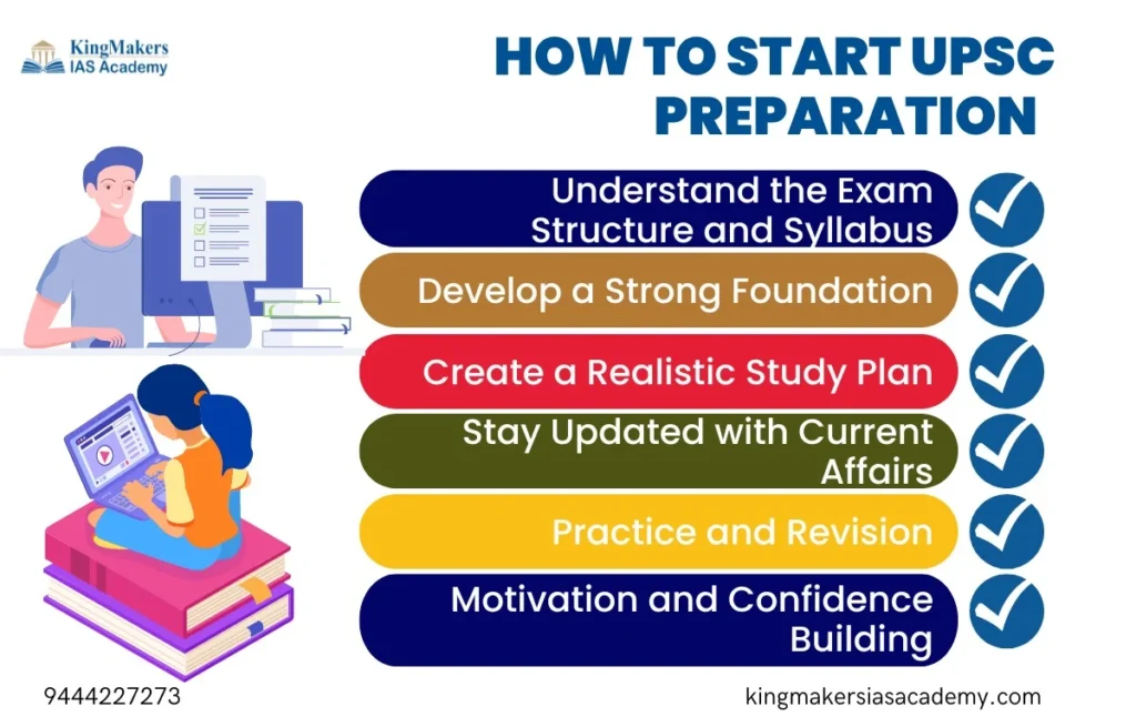 To conclude, starting UPSC preparation from scratch might seem daunting, but with the right approach, it is entirely achievable. Remember, this journey requires patience, perseverance, and passion. Stay focused on your goal, keep adapting your strategies, and success will follow. So, if you have been wondering, “How can I start UPSC preparation?”, you can get guidance from KingMakers IAS Academy to take the first step.