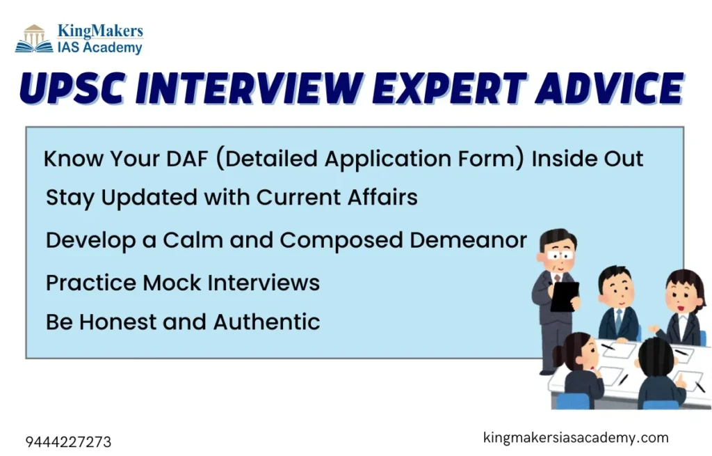 To conclude, interview is an opportunity to showcase not just what you know, but who you are. When you consider how to prepare UPSC interview, always try to approach for your preparation with sincerity, authenticity, and a commitment to the values that underpin the civil services. With the right guidance at KingMakers IAS Academy, you can navigate this final stage successfully and move one step closer to achieving your dream of becoming an IAS officer.